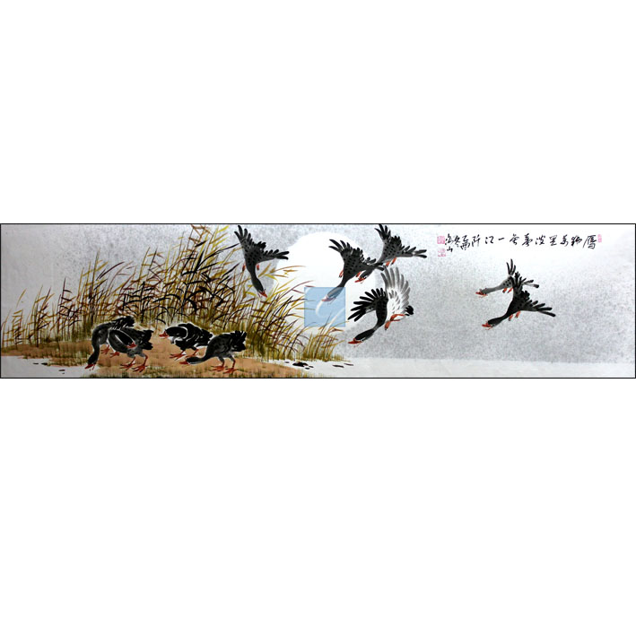 해산의 청둥오리와 갈대밭(동양화)
